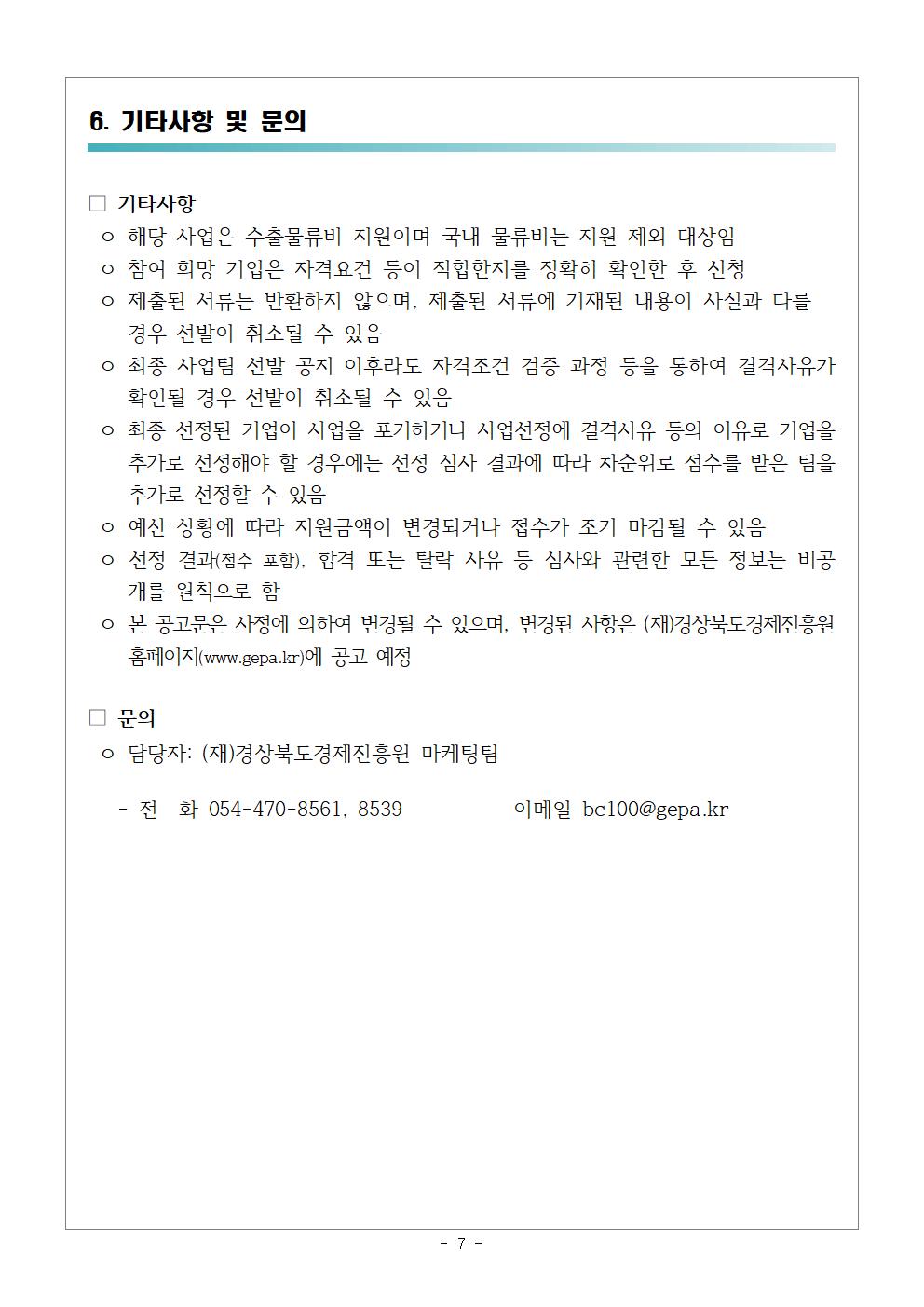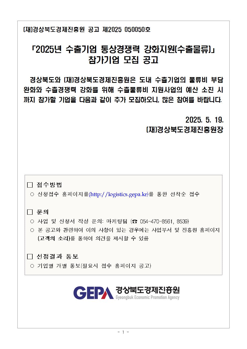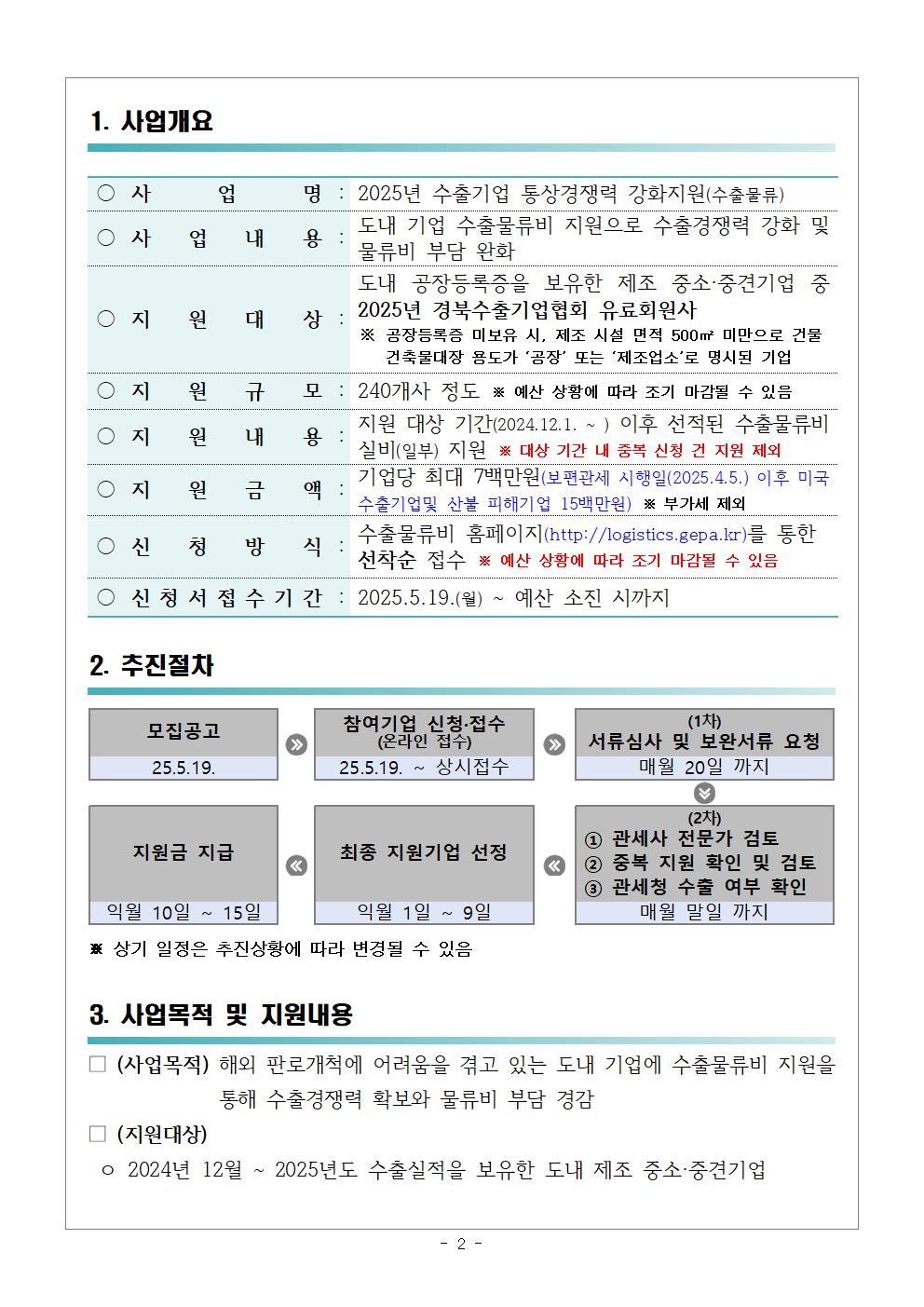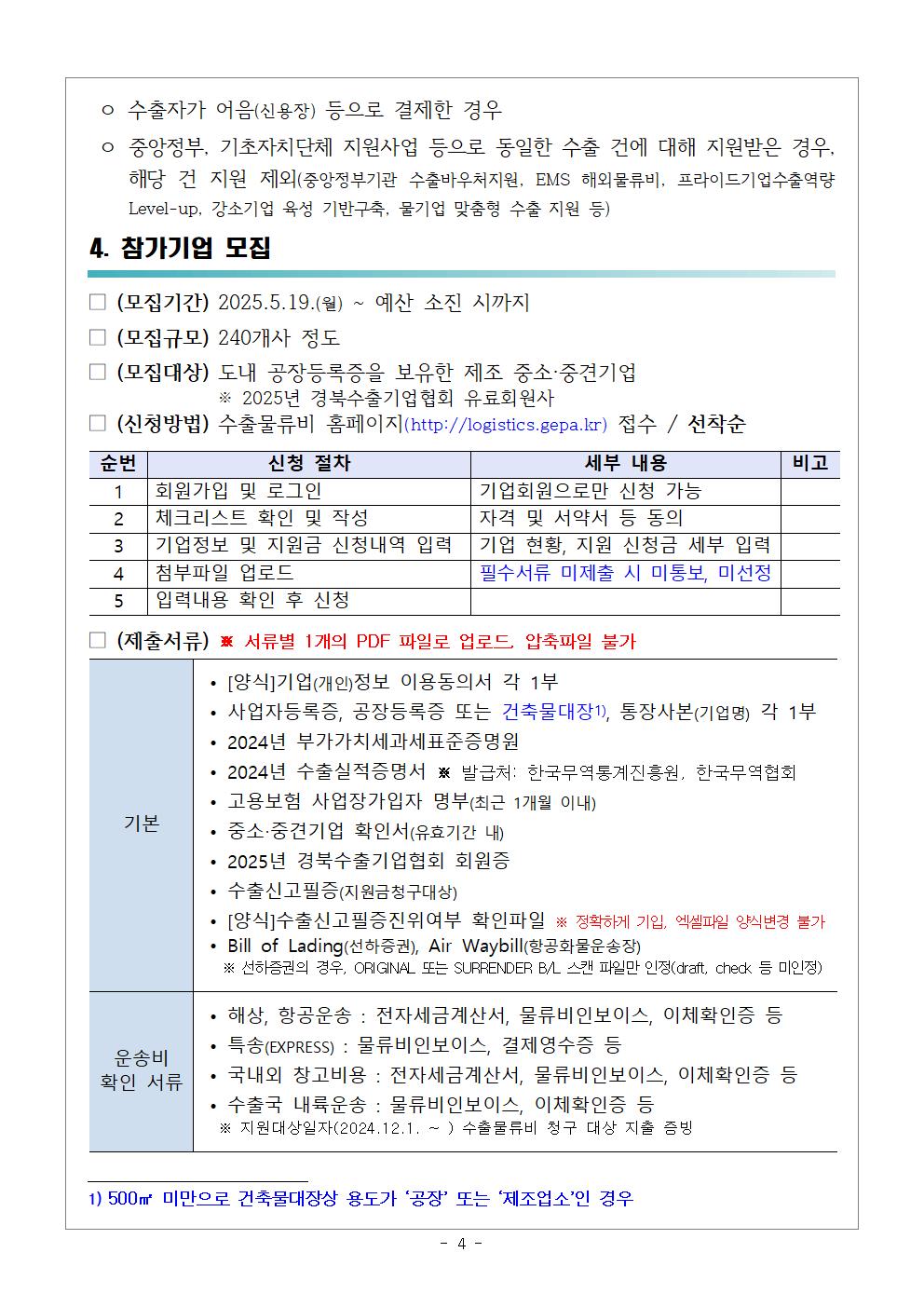 경북도내 중소‧중견 기업의 수출 물류비 부담 경감 목적으로 새로운도약을 시작합니다.